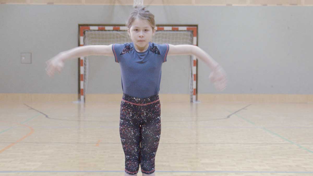 Arme nach vorne strecken – Arm Körper vorbei – Arme hinten strecken
