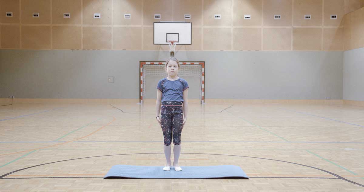 Gerade stehen – Arme liegen nach unten am Körper